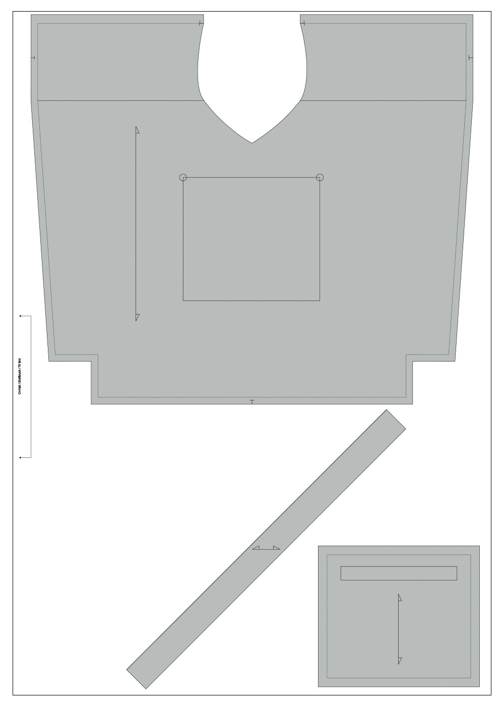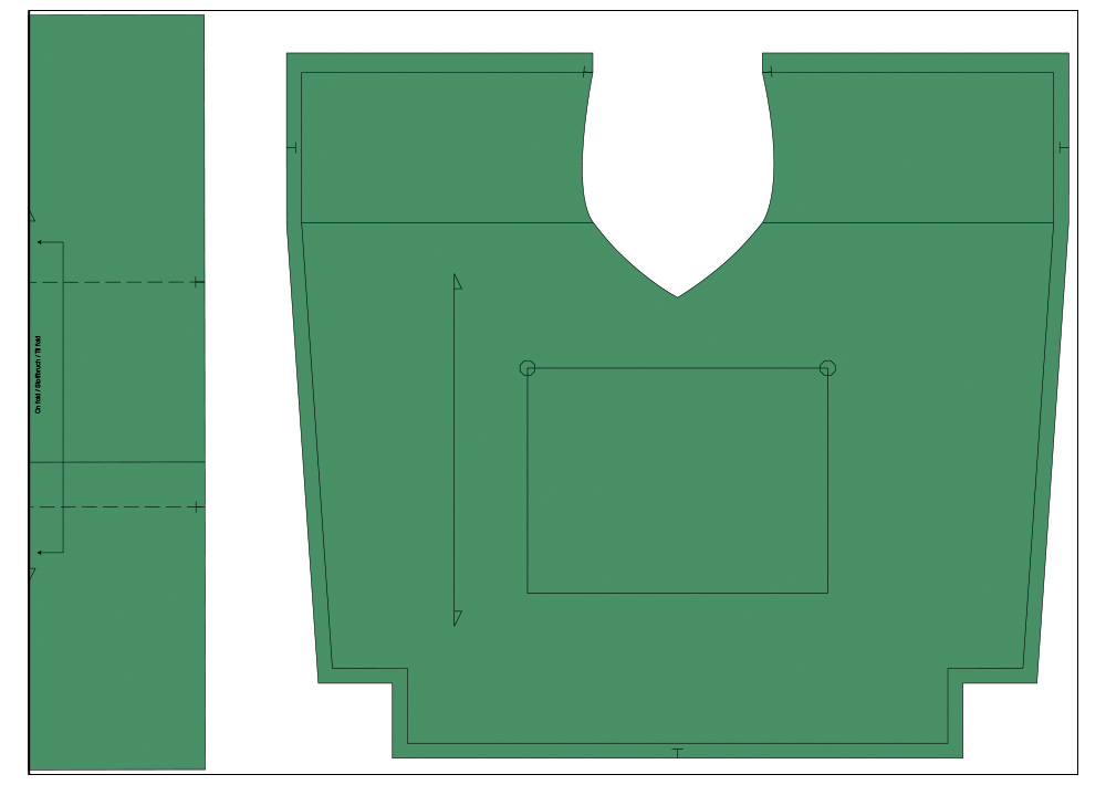 This pattern uses different symbols to clearly indicate which pieces should be cut from fabric, lining, and interfacing.